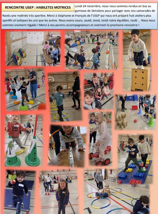 Les rencontres d’habilités motrices du cycle 1 organisées sur nos différents secteurs , Mazamet, Albi, Gaillac et Castres — ont rassemblé 542 enfants et ont été une véritable réussite.