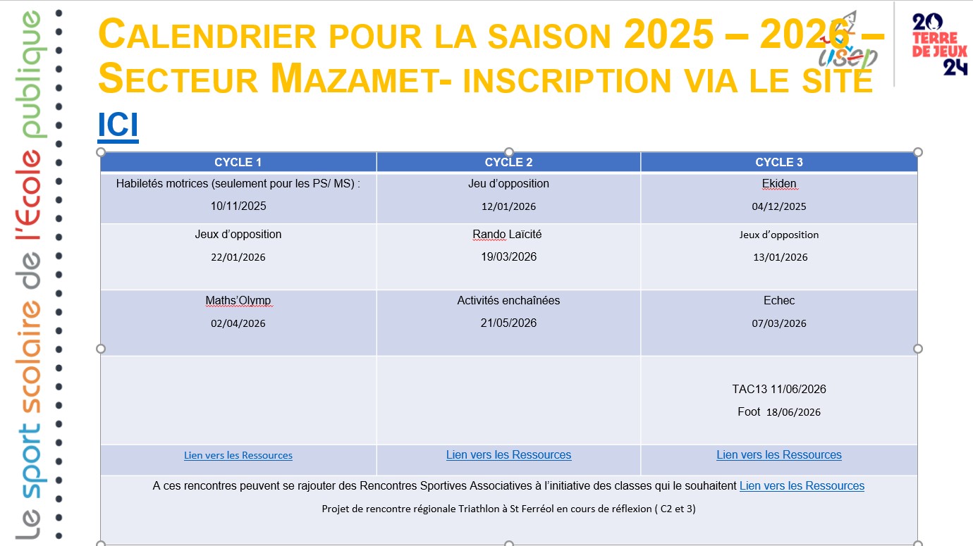 Voici le diaporama de présentation du 3/09/2025 :Powerpoint anim peda USEP rentrée 2025 du 3 septembre 2025 secteur Mazamet Labruguière